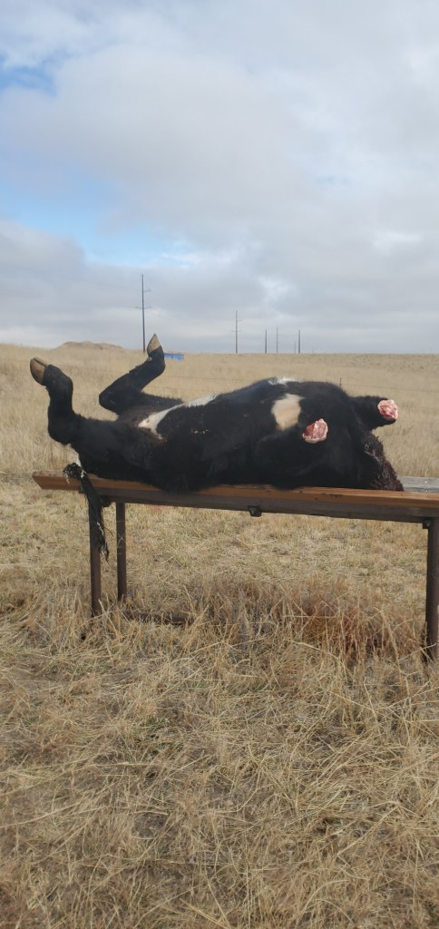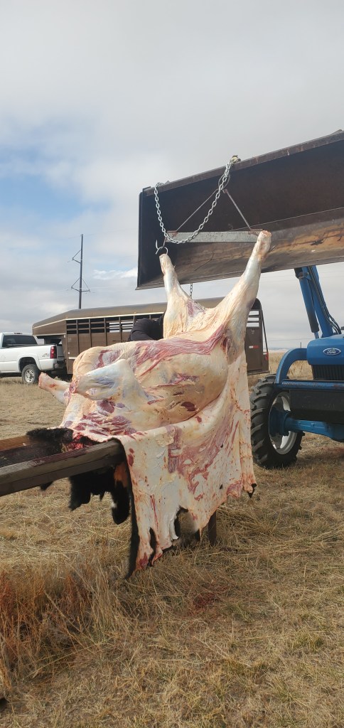 This steer will hang in the cooler for a few weeks. Then we will begin the butchering process. Unfortunately, my brother and his wife won’t be here to help us 😥